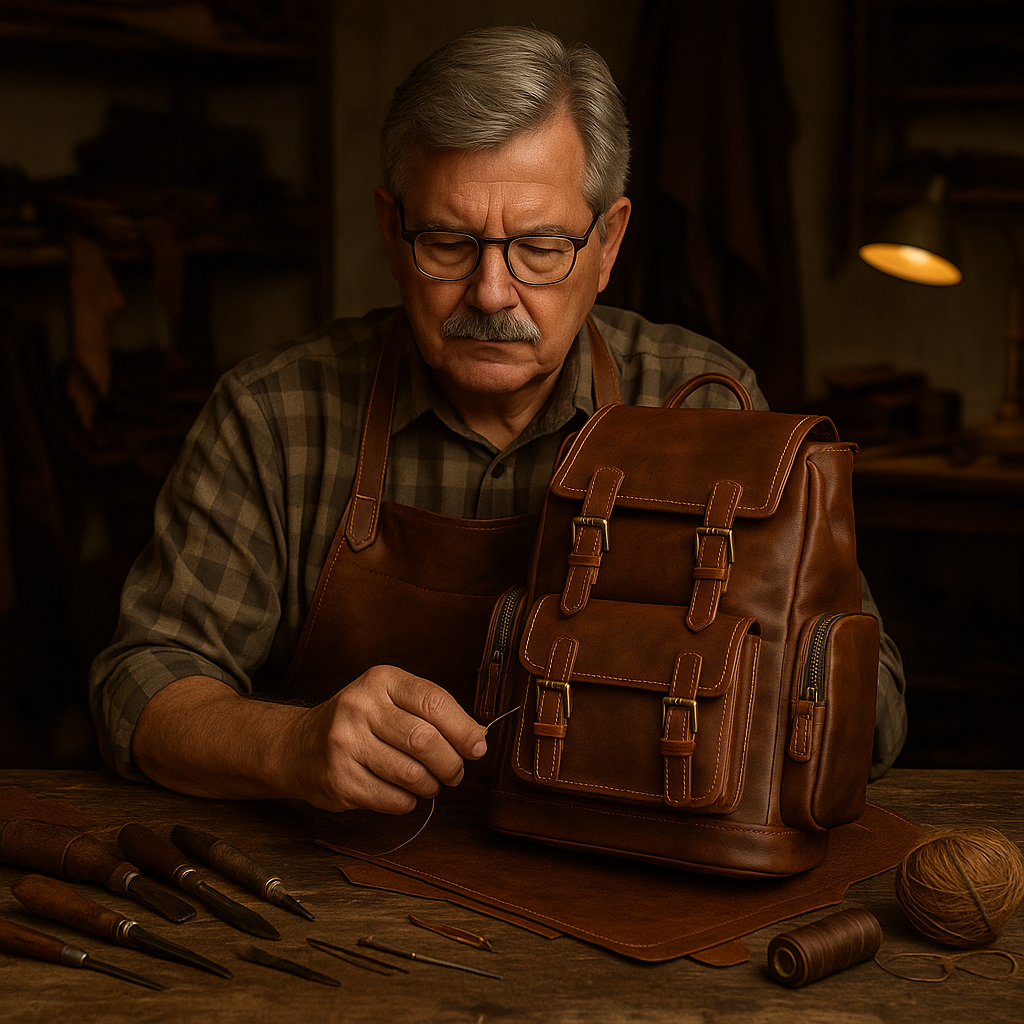 Hello, I’m David Johnson, and I have been crafting exceptional leather goods for over four decades using the traditional techniques my father taught me. Each piece is carefully handcrafted in my workshop in San Antonio, Texas, using genuine materials and the right tools—no shortcuts, no machines. Leatherworking is my passion, and it gives me deep satisfaction to create backpacks that last a lifetime and become more beautiful with age.